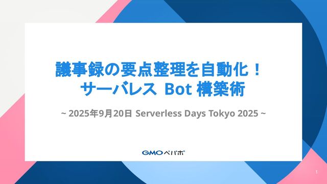 1 議事録の要点整理を自動化! サーバレス Bot 構築術 ~ 2025年9月20日 Serverless Days