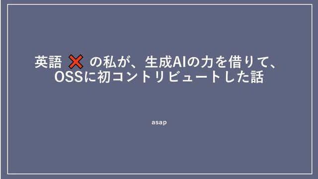 asap 英語 の私が、生成AIの力を借りて、 OSSに初コントリビュートした話