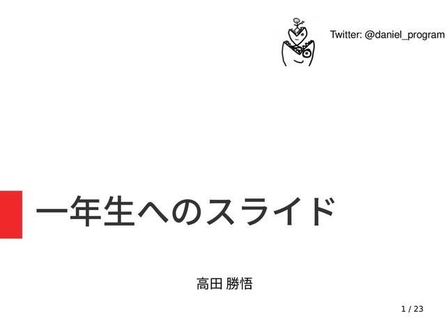 1 / 23 一年生へのスライド 高田 勝悟 Twitter: @daniel_program