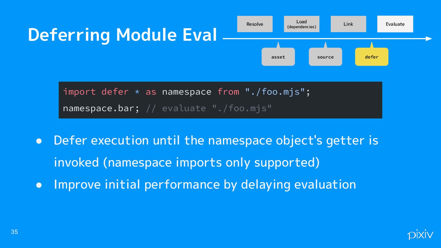 18. 35 Deferring Module Eval Resolve Load (dependencies) Link Evaluate asset
