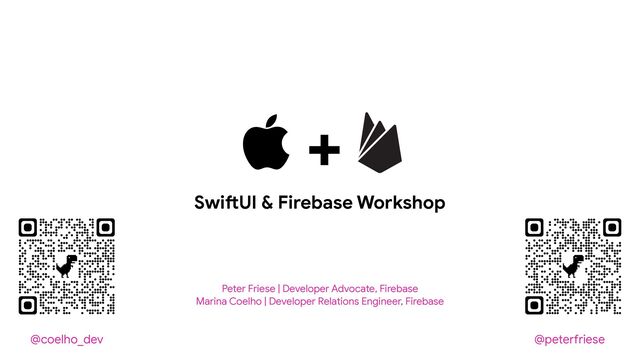 Relations Engineer, Firebase  + Swi!UI & Firebase Workshop @coelho_dev @pete!riese