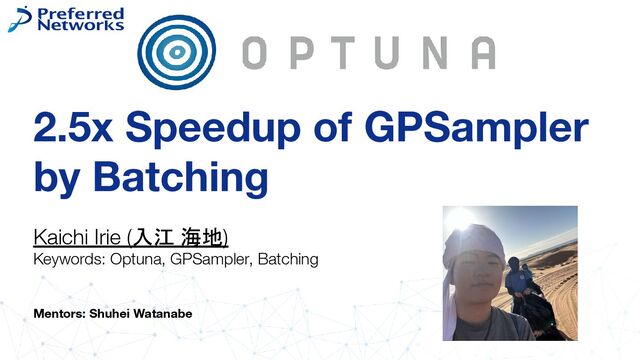 but slow, creating a critical bottleneck in real-world, large-scale optimization tasks Objective • Accelerate GPSampler without compromising its optimization accuracy, the library's usability, and maintainability Approach • Replace sequential multi-start optimization with batching Key Achievements & Impact • 2.0-2.5x speedup🚀 without degrading accuracy or usability • Merged into master🎉 : will be available in Optuna v4.6+ 2