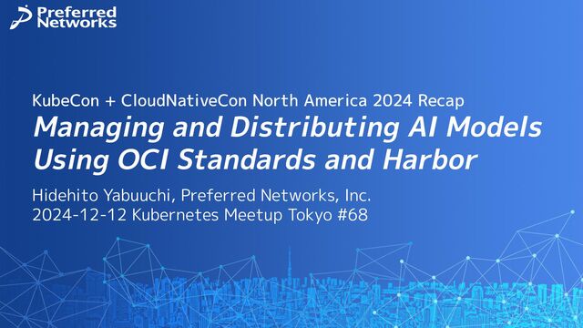 KubeCon + CloudNativeCon North America 2024 でのセッション "Managing and Distributing AI Models Using OCI Standards and Harbor" を recap し、関連する Kubernetes に追加される機能や PFN での事例を紹介します。