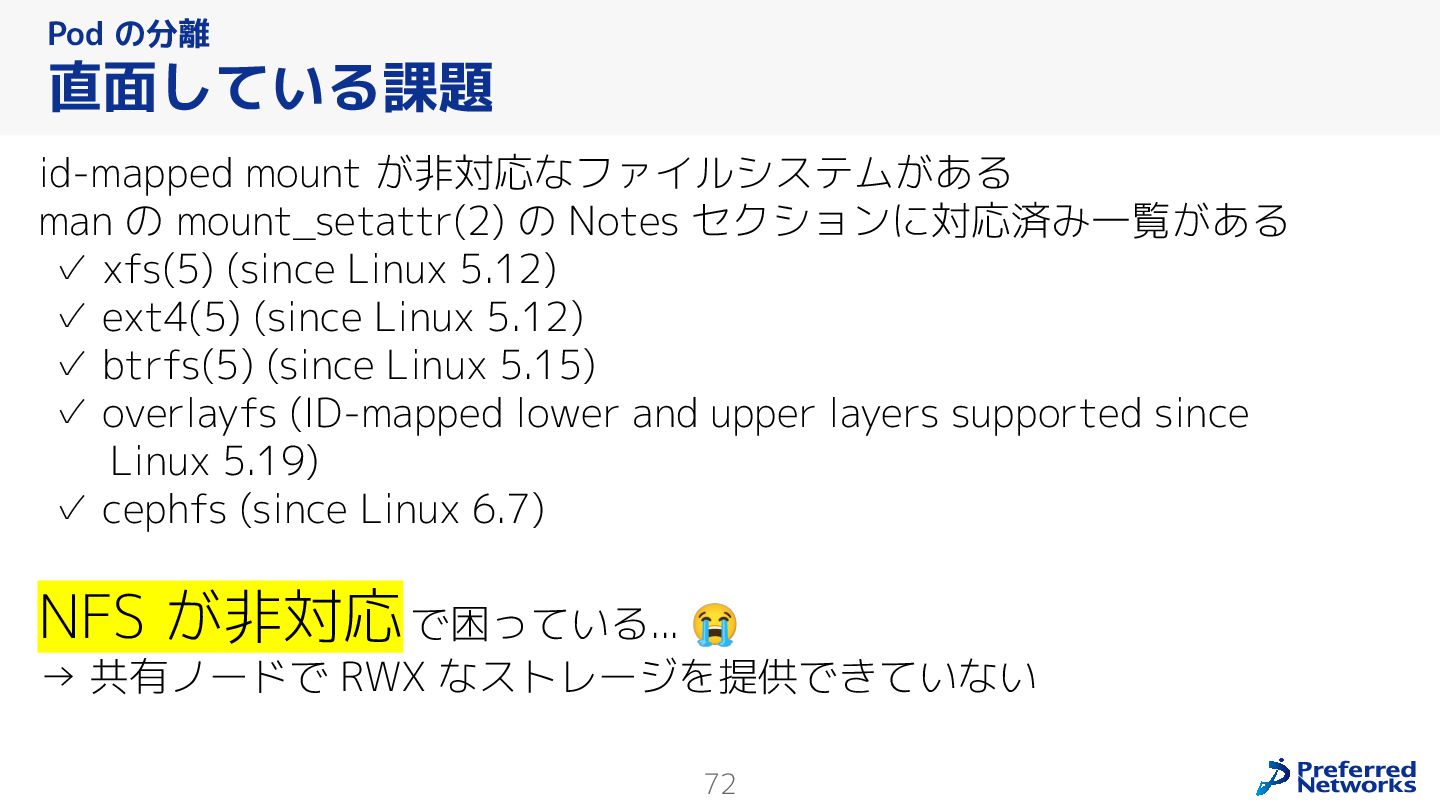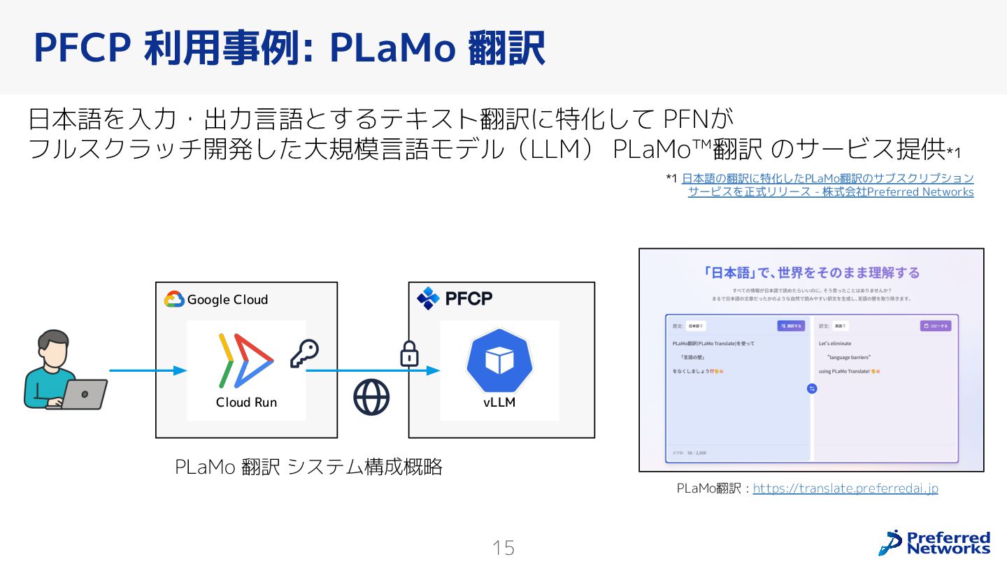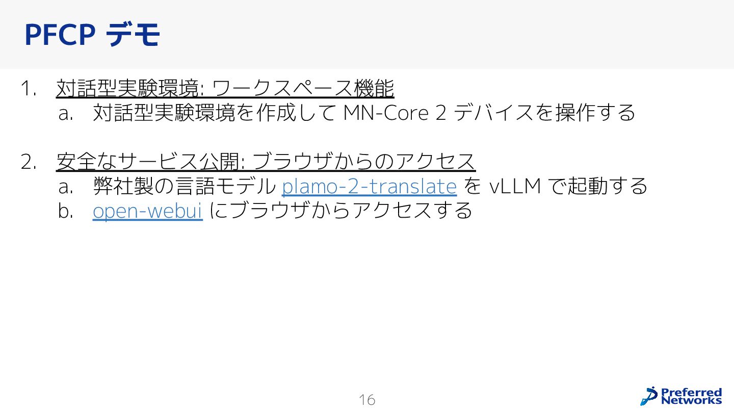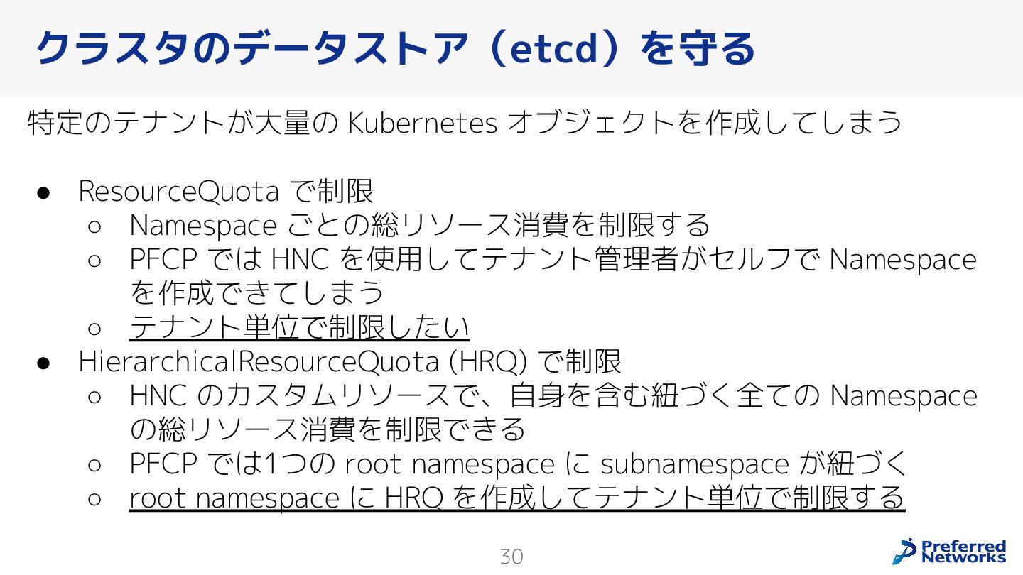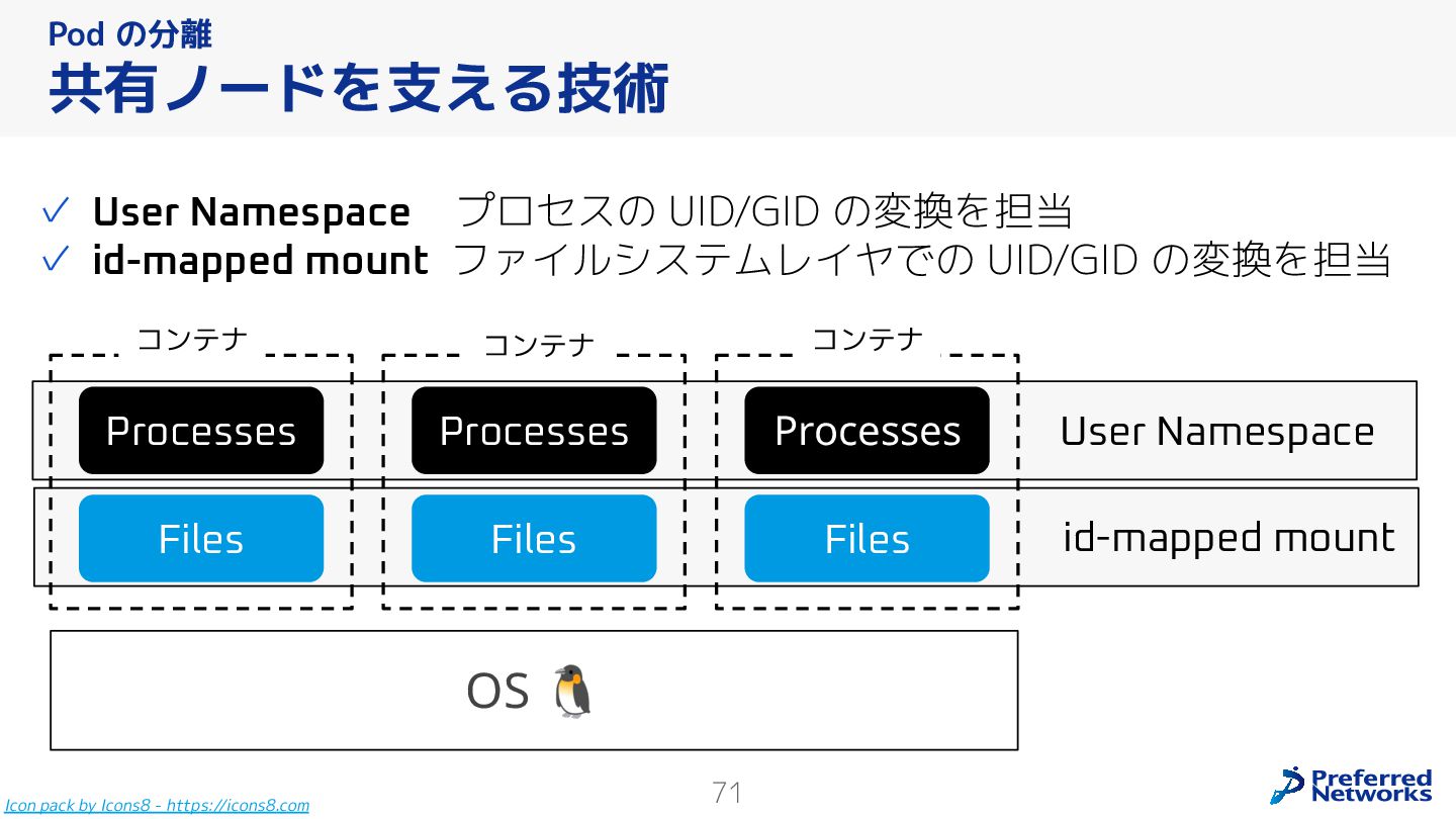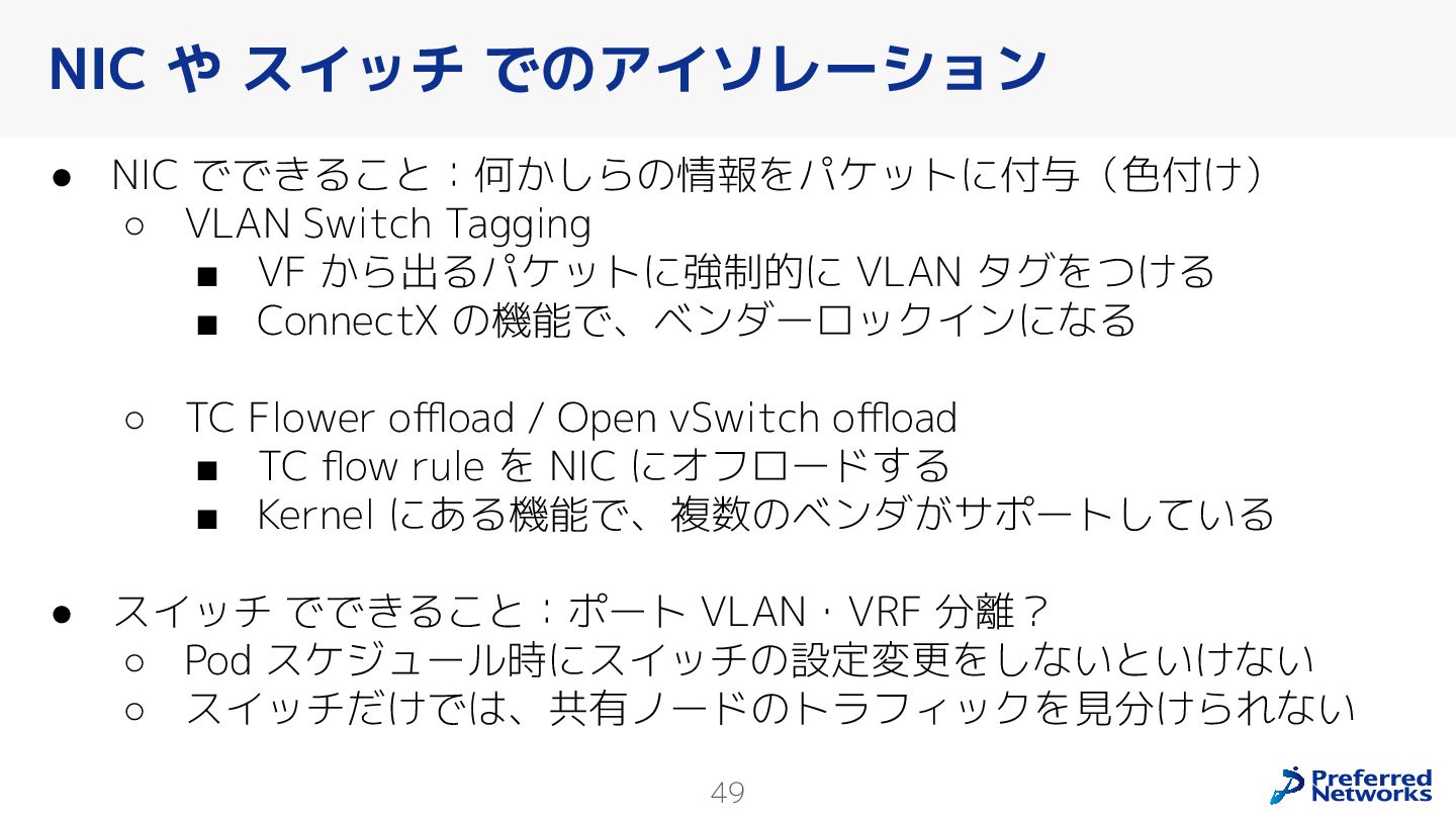 Preferred Networksでは、AI/MLワークロード向けのクラウドサービスである「Preferred Computing Platform (PFCP)」をマルチテナントKubernetesコンテナ基盤として提供している。本講演では、複数ユーザが利用するマルチテナント基盤で重要となる、Kubernetes APIレベルでの権限分離とその強制、同一ホスト上でのプロセス・データの分離、同一ネットワーク内での通信分離等のアイソレーション技術、限られた計算リソースの公平制御、および課金システムについて、その実現のための技術と設計思想について説明する。また、Kubernetes上でAI/ML ワークロードを実行するために必要なアクセラレータのサポート、RDMAを含めHPCアプリケーションを実行する上で必要になる基本的な技術、複数の拠点にスケール可能なシステム構成等、PFCP全体についても概説する。