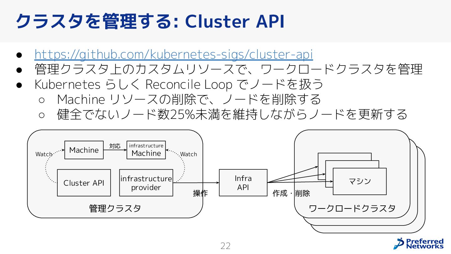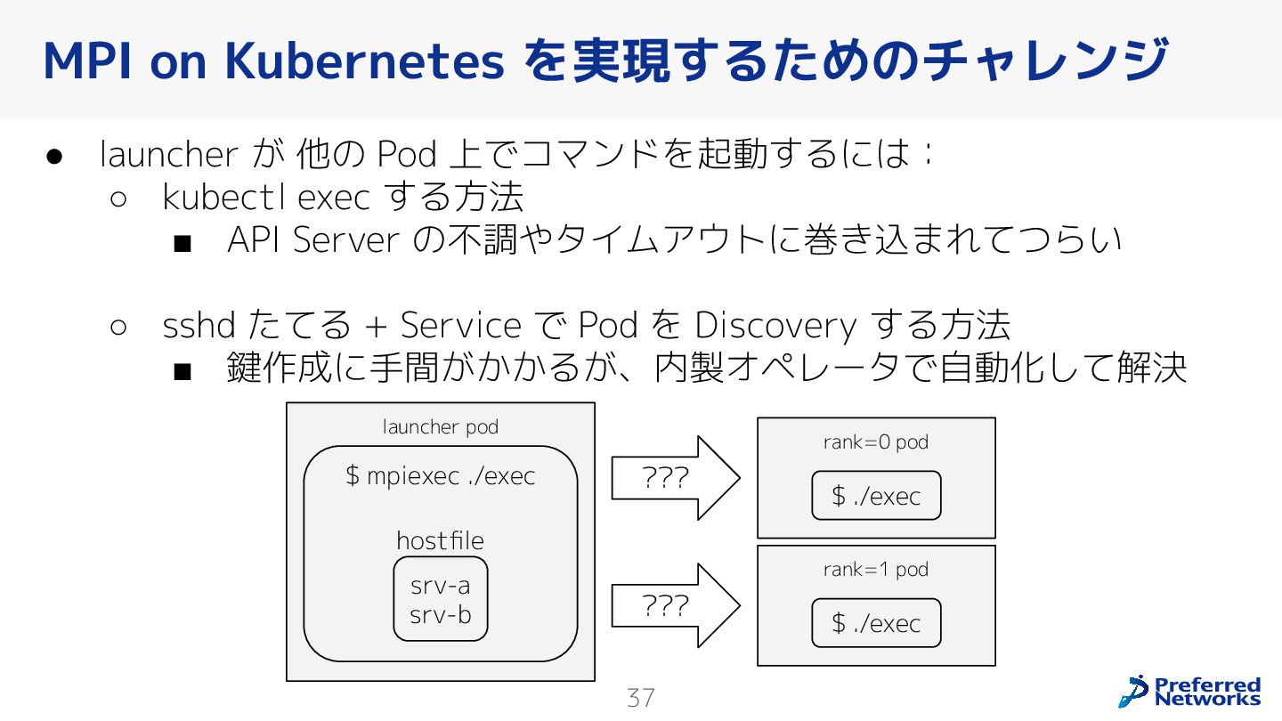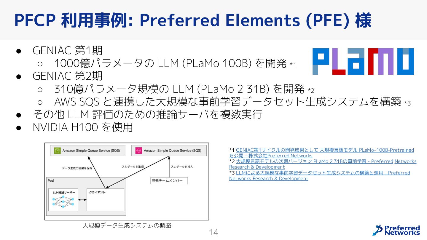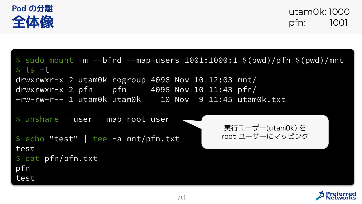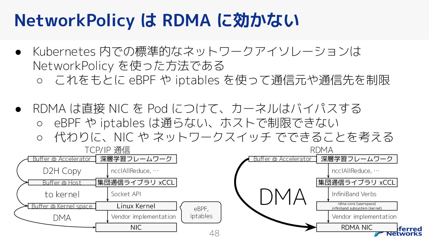 Preferred Networksでは、AI/MLワークロード向けのクラウドサービスである「Preferred Computing Platform (PFCP)」をマルチテナントKubernetesコンテナ基盤として提供している。本講演では、複数ユーザが利用するマルチテナント基盤で重要となる、Kubernetes APIレベルでの権限分離とその強制、同一ホスト上でのプロセス・データの分離、同一ネットワーク内での通信分離等のアイソレーション技術、限られた計算リソースの公平制御、および課金システムについて、その実現のための技術と設計思想について説明する。また、Kubernetes上でAI/ML ワークロードを実行するために必要なアクセラレータのサポート、RDMAを含めHPCアプリケーションを実行する上で必要になる基本的な技術、複数の拠点にスケール可能なシステム構成等、PFCP全体についても概説する。