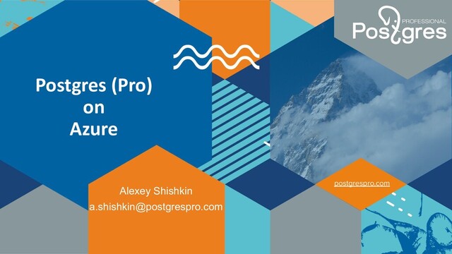 This presentation was given at the Postgres (Pro) on Azure virtual event by Alexey Shishkin (Cloud Architect, Postgres Professional) on April 21, 2021. The webinar was intended for everyone running PostgreSQL on Azure and provided a walkthrough for Postgres Pro DBMS offers available in the Microsoft Azure Marketplace, enabling a user to make the most out of Postgres-based infrastructure on Azure.
