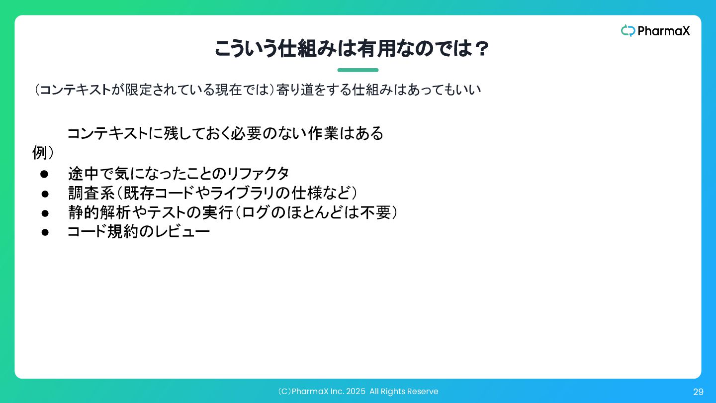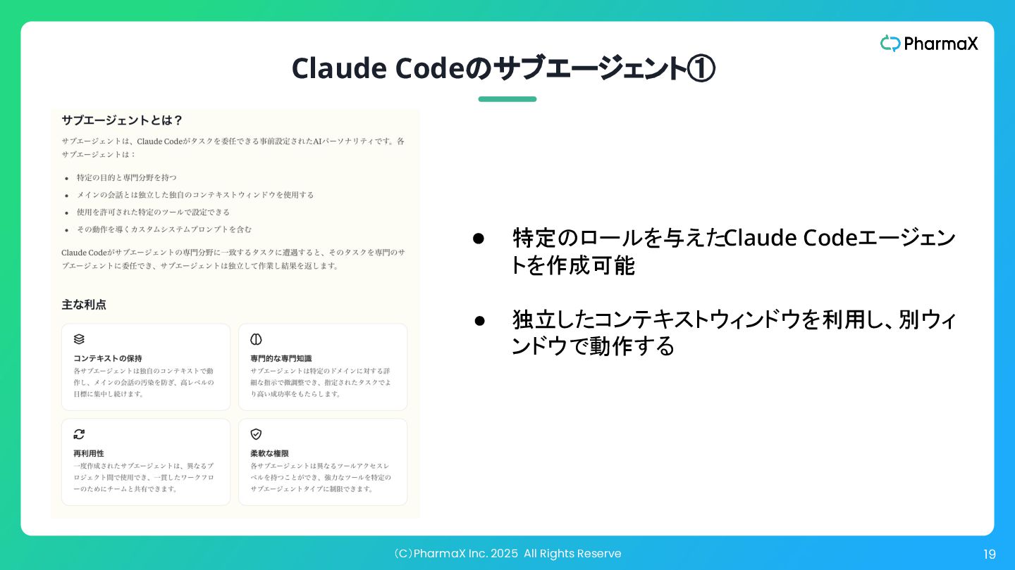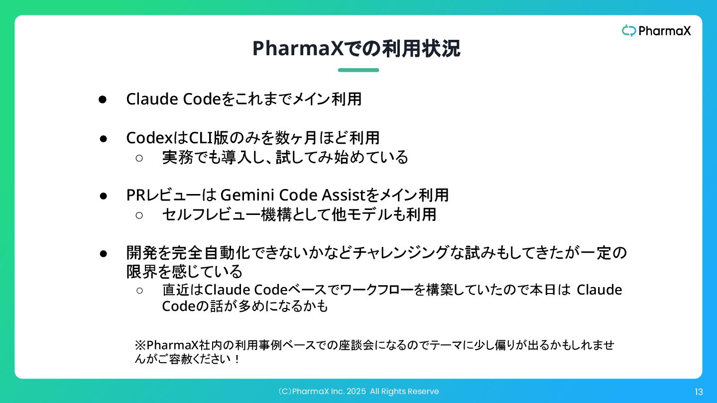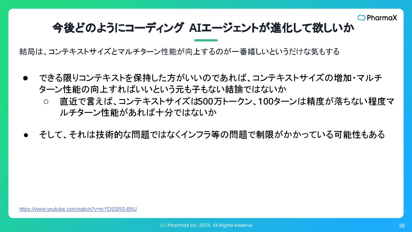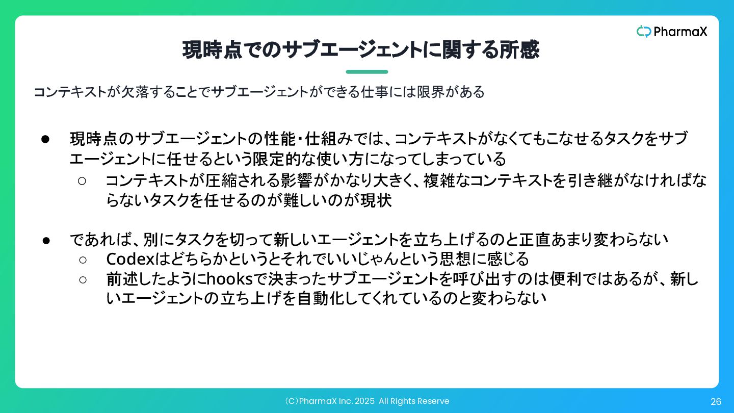 Code(Anthropic) Codex(OpenAI) モデル Claude(Opus, Sonnet Haiku) Sonnet 4.5がデフォルト gpt-5-codex(low, medium, high) gpt-5(low, medium, high) 動作環境(CLI/ ターミナル) ◯ ネイティブなターミナルインター フェースを提供 ◯ Codex CLIとしてターミナルから利用可能 動作環境 (クラウド) ▲ ※Claude Code on the webの ベータ版提供開始 ◯ Codex Web エフェメラル(短命)な Linuxサンドボックスで動作 高度な カスタマイズ性 ◎ hooks、サブエージェントなど ▲ 基本的にはサードパーティツールや mcpにてカスタマイズ コンテキストウィン ドウ ◯ 200K ◎ 400K(input: 272K + output: 128K )
