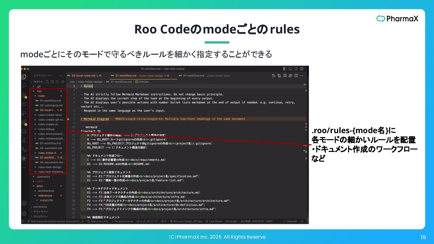 Roo Code:数百時間 ◦ Cluade Code:100時間弱 • 使い分けのルールというのは正直まったくない ◦ Roo CodeでつまったらClaude Codeに変えて、Claude CodeでつまったらRoo Codeに変えるという のを繰り返しているだけで明確なルールというのはまったくない ◦ 使い分けはただの気分だが、どっちかで詰まったときにもう一方なら解決できるということはある気が する • 同じClaude 4系を使った際には性能のトータルの違いというのも正直まったく感じない ◦ Claude Code Actionは比較のスコープ外とするという前提での話 ◦ Claude Codeの盛り上がりに違和感を感じる=思ったよりもみんな Clineに賭けてなかった?笑 ◦ Maxプランにした際の値段は確かに圧倒的に Claude Codeが優位 上野のRoo CodeとClaude Codeの使い分け 最近はRoo CodeとClaude Codeを交互に使っている