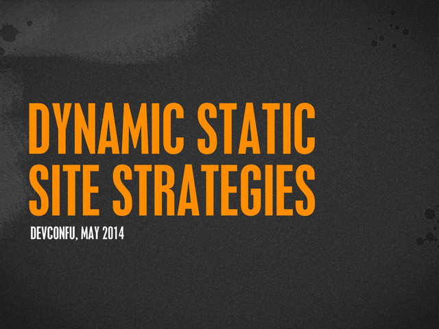 In this talk we'll explore some unexpected capabilities And characteristics of "static" sites. We'll look at ways to use emerging tools and services to create robust, high performance sites which can be more dynamic than some of their heavier and more costly brothers and sisters.