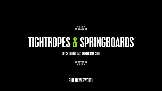 How can we dismount the tightrope and replace it with a springboard to greater creativity and ambition? To push the boundaries rather than follow the conventions established around us?