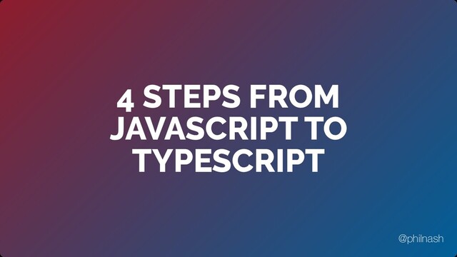 Over this talk we'll take an existing JavaScript project and move it to TypeScript, noting the new benefits we get at each step of the transition. By the end you'll have a blueprint for moving your project to TypeScript and be confident that you can go as far as you and your team needs to.