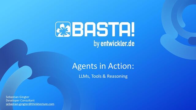 Productivity & Software Quality ▪ All things .NET ▪ Microsoft MVP for .NET & Azure AI Services ▪ [email protected] ▪ https://www.thinktecture.com Agents in Action LLMs, Tools & Reasoning Sebastian Gingter Developer Consultant @ Thinktecture AG