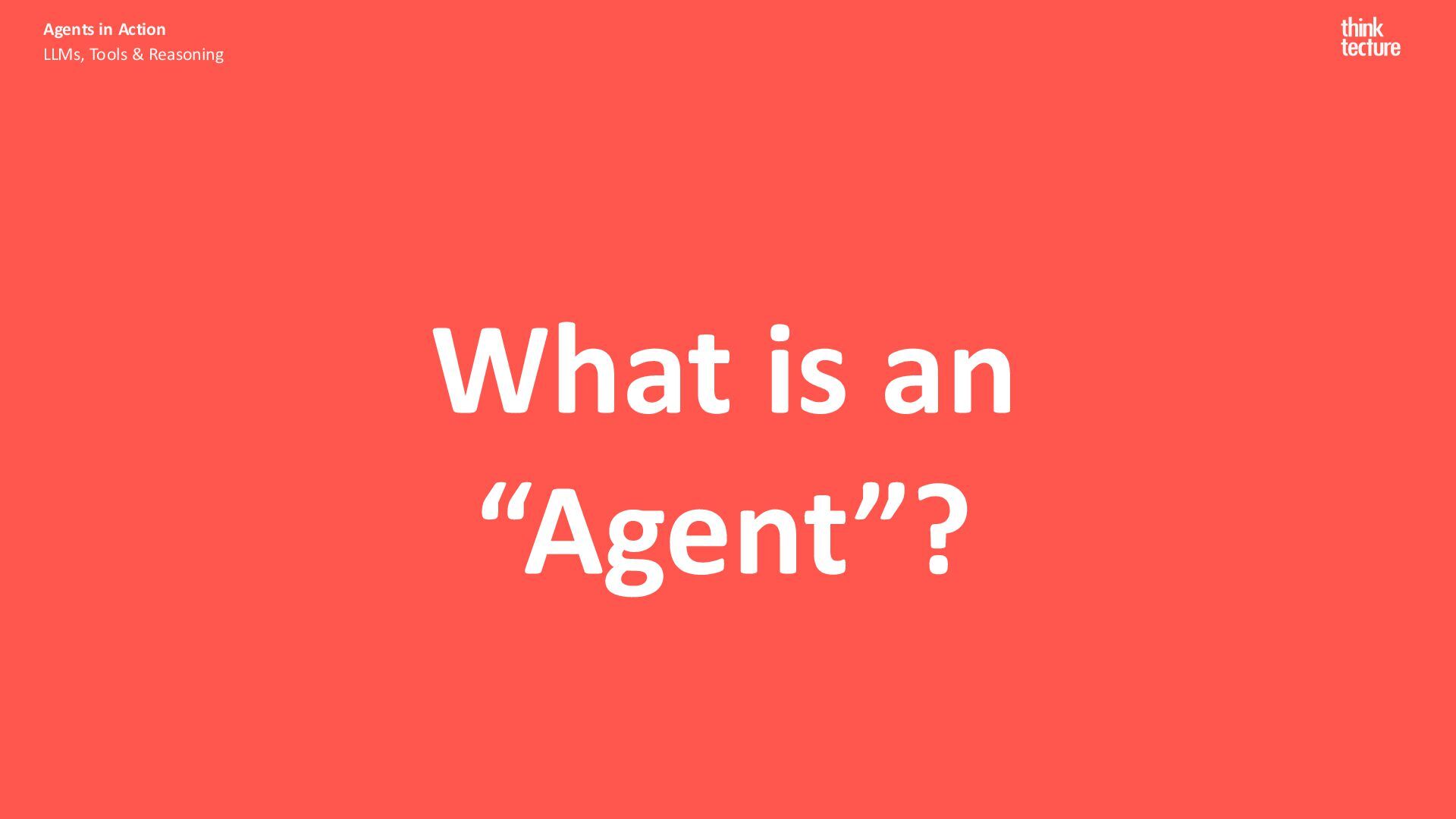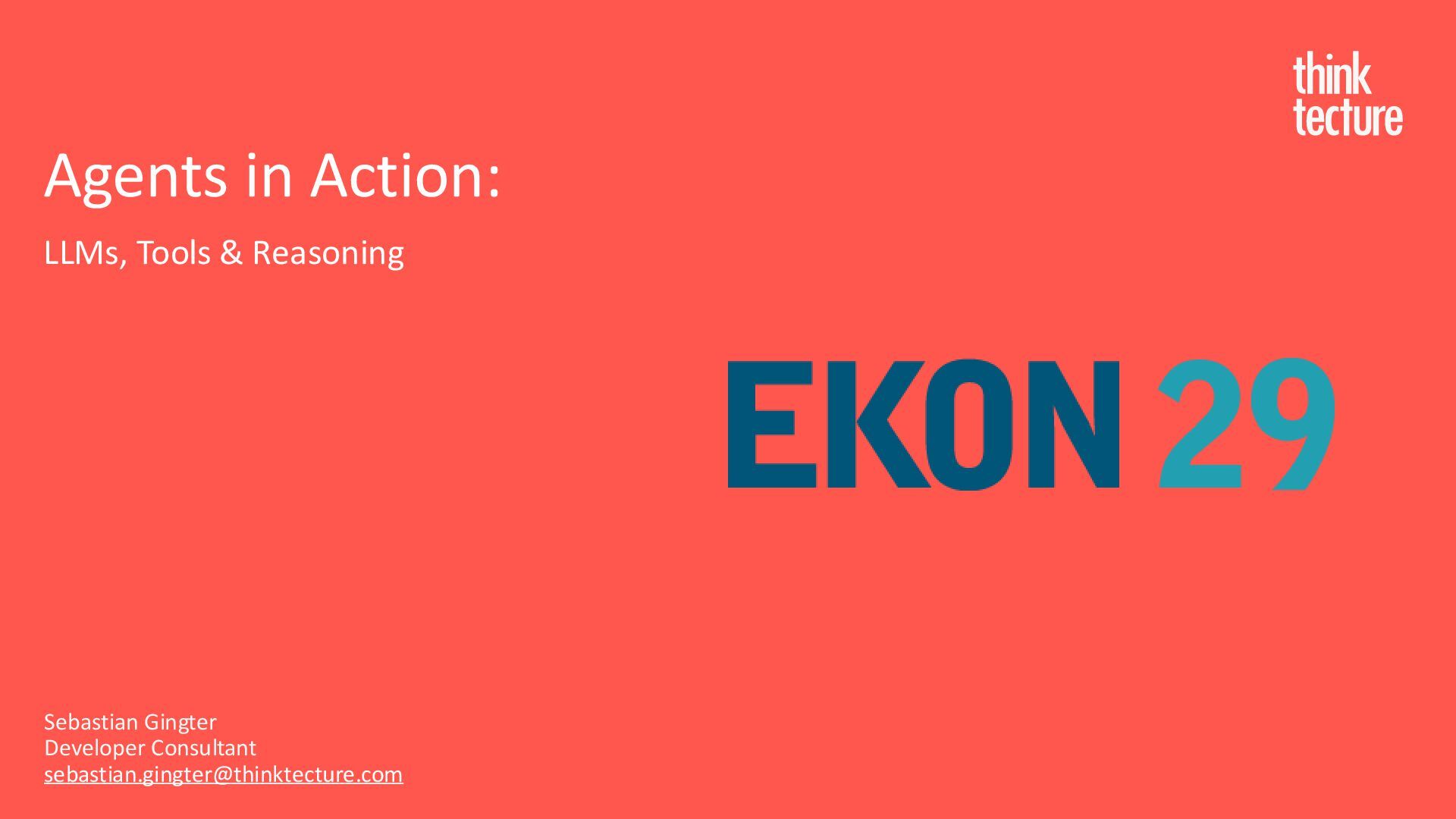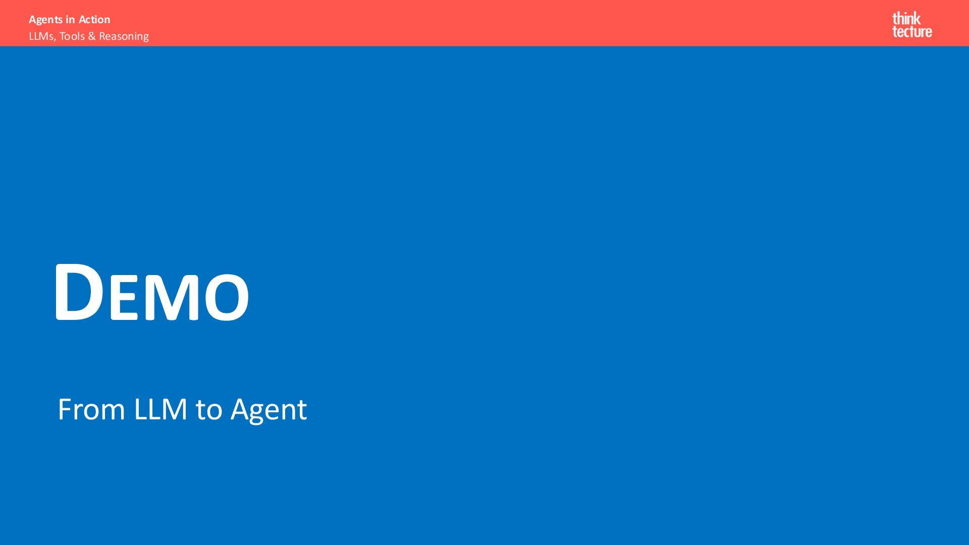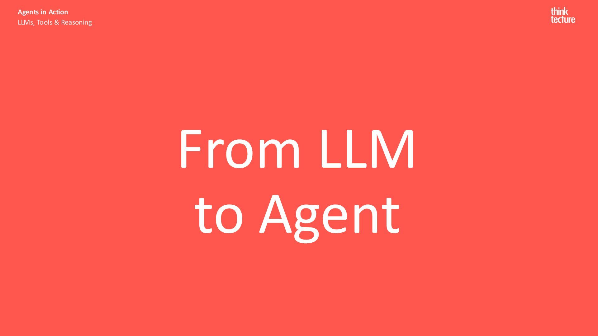 Productivity & Software Quality ▪ All things .NET ▪ Microsoft MVP for .NET & Azure AI Services ▪ [email protected] ▪ https://www.thinktecture.com Agents in Action LLMs, Tools & Reasoning Sebastian Gingter Developer Consultant @ Thinktecture AG