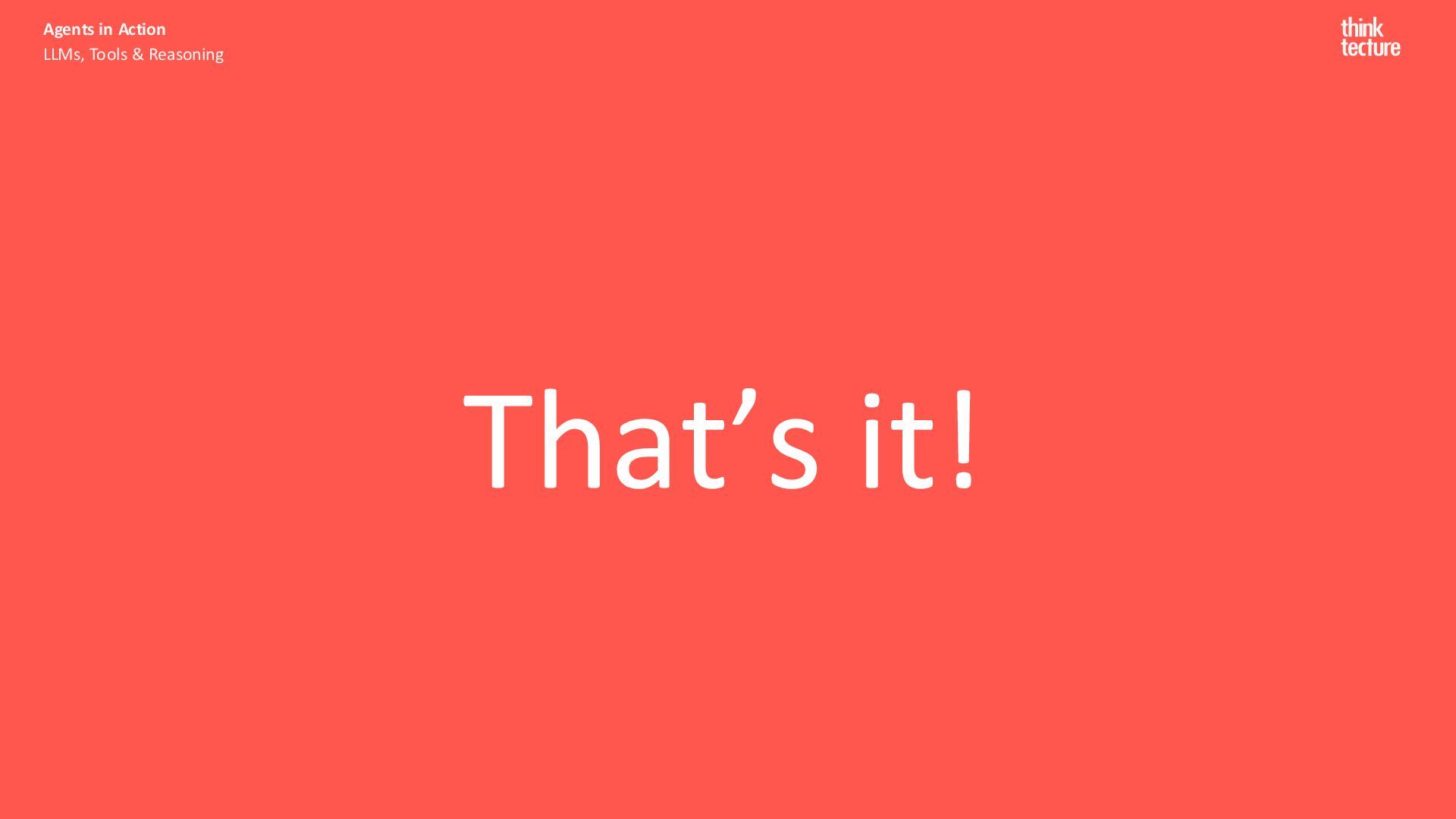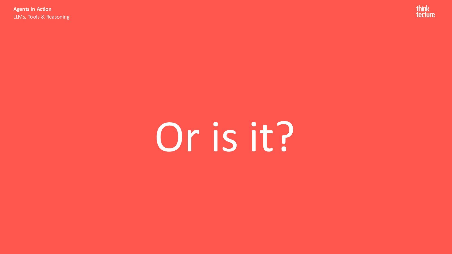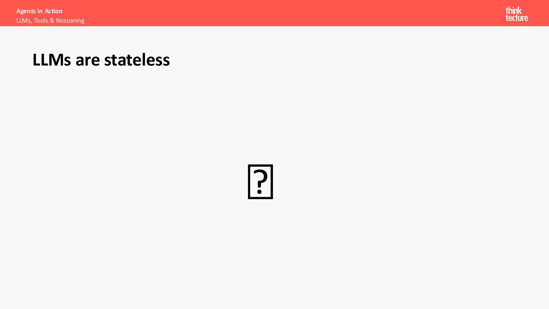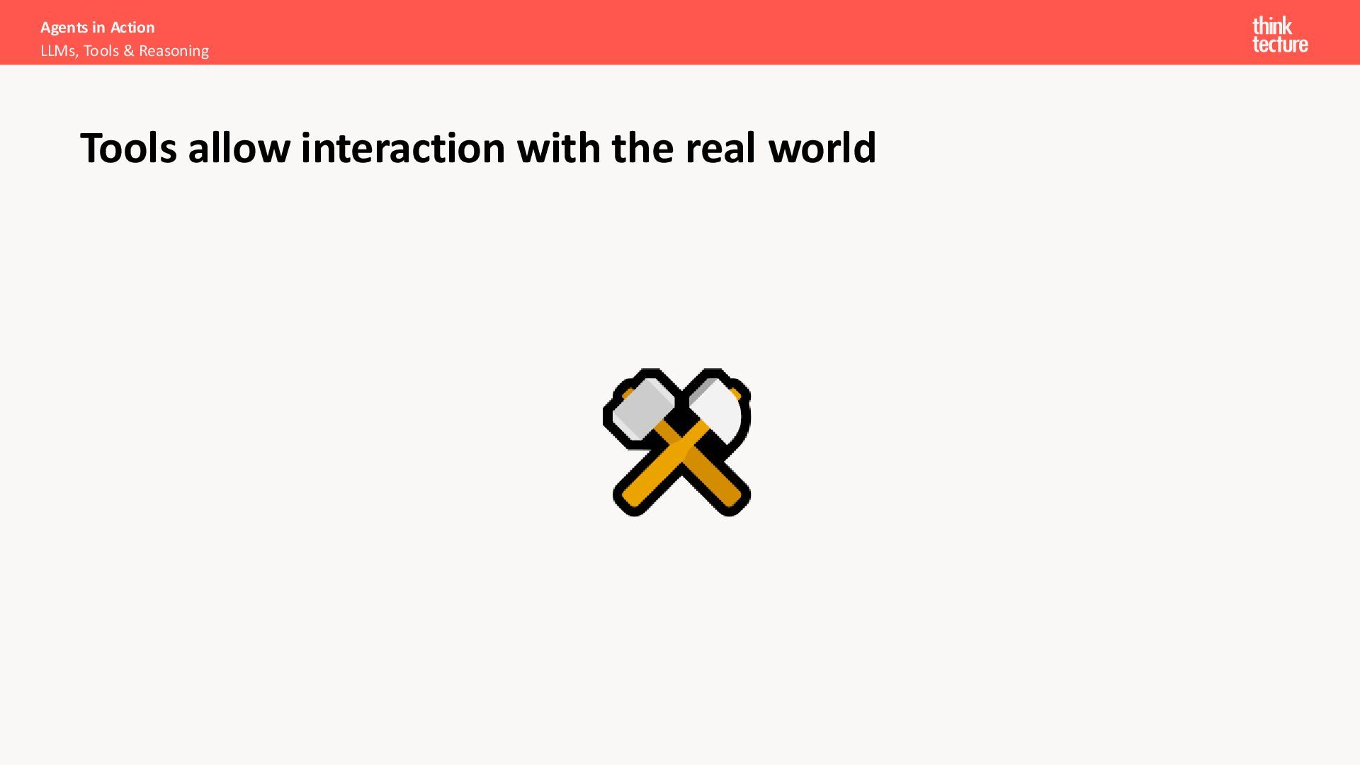 Productivity & Software Quality ▪ All things .NET ▪ Microsoft MVP for .NET & Azure AI Services ▪ [email protected] ▪ https://www.thinktecture.com Agents in Action LLMs, Tools & Reasoning Sebastian Gingter Developer Consultant @ Thinktecture AG