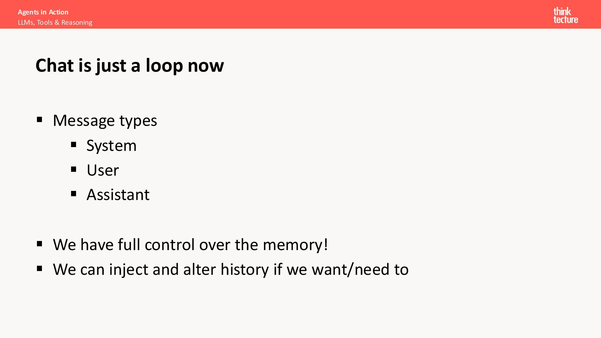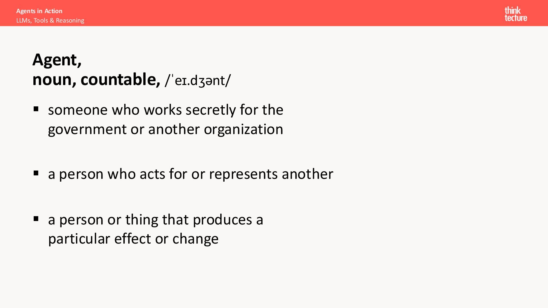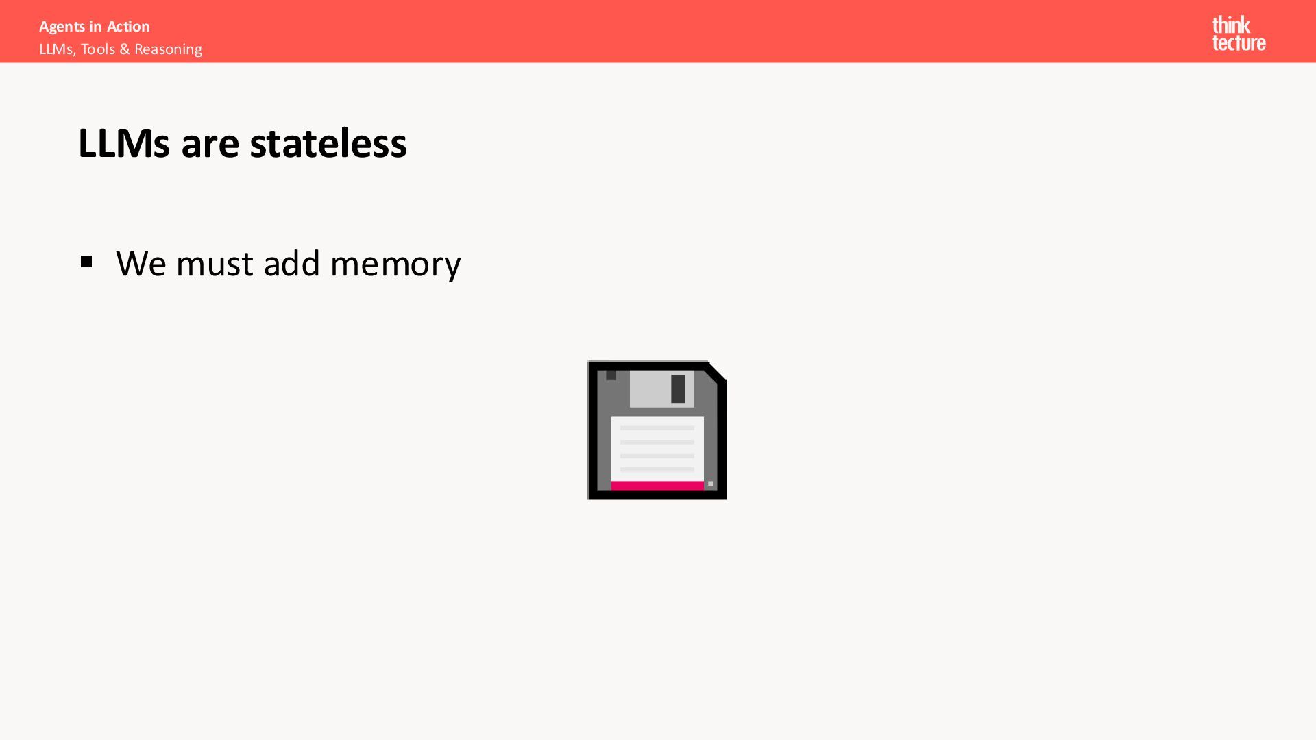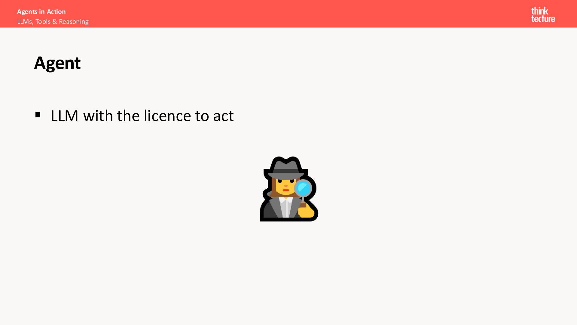 Productivity & Software Quality ▪ All things .NET ▪ Microsoft MVP for .NET & Azure AI Services ▪ [email protected] ▪ https://www.thinktecture.com Agents in Action LLMs, Tools & Reasoning Sebastian Gingter Developer Consultant @ Thinktecture AG