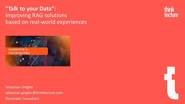 , -0.13498 , -0.08813 , 0.47377 , -0.61798 , -0.31012 , -0.076666, 1.493 , -0.034189, -0.98173 , 0.68229 , 0.81722 , -0.51874 , -0.31503 , -0.55809 , 0.66421 , 0.1961 , -0.13495 , -0.11476 , -0.30344 , 0.41177 , -2.223 , -1.0756 , -1.0783 , -0.34354 , 0.33505 , 1.9927 , -0.04234 , -0.64319 , 0.71125 , 0.49159 , 0.16754 , 0.34344 , -0.25663 , -0.8523 , 0.1661 , 0.40102 , 1.1685 , -1.0137 , -0.21585 , -0.15155 , 0.78321 , -0.91241 , -1.6106 , -0.64426 , -0.51042 ] Embedding-Model "Talk to your Data": Improving RAG solutions based on real-world experiences http://jalammar.github.io/illustrated-word2vec/