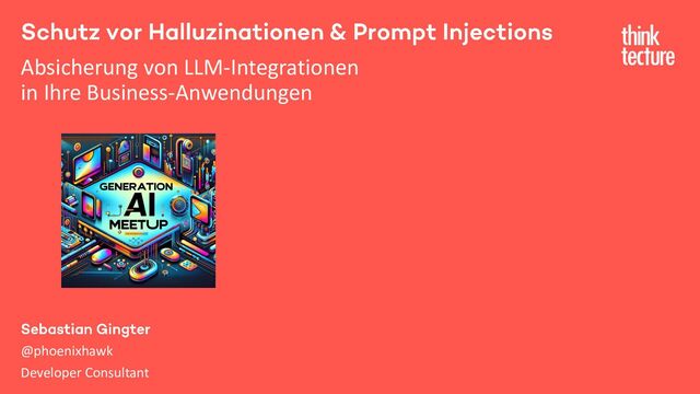 Talk info: https://www.thinktecture.com/contributions/schutz-vor-halluzinationen-und-prompt-injections-absicherung-von-llm-integrationen-in-business-apps/
