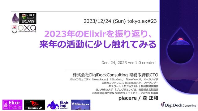 1. 2023/12/24 (Sun) tokyo.ex#23 2023年のElixirを振り返り、 来年の活動に少し触れてみる Dec. 24, 2023 ver 1.0