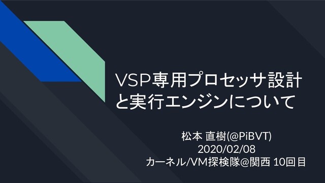 VSP専用プロセッサ設計 と実行エンジンについて 松本 直樹(@PiBVT) 2020/02/08 カーネル/VM探検隊@関西 10回目