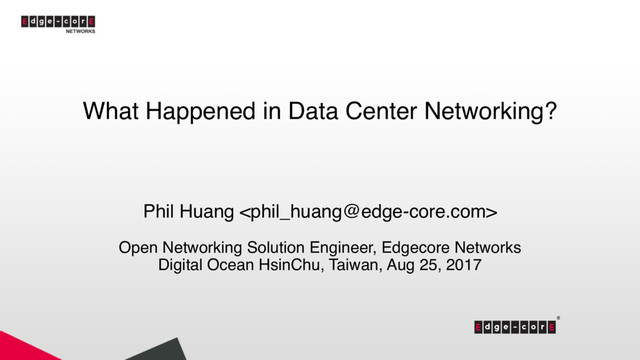 rights reserved | www.edge-core.com 16 Traditional Switch Data Plane Control Plane Applications SDN-based System Data Plane Control Plane Applications Control Protocol Open Networking Switch Data Plane Linux OS Applications