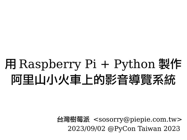 樹莓派(Raspberry Pi)問世十週年了,從學校的教具到企業的量產品都可以看到 Raspberry Pi Inside。 這次我們將使用 Raspberry Pi + Python 和使用台灣在地木材的德川音箱製作阿里山小火車的影音導覽系統,讓遊客們能沉浸在阿里山的美好影音。 我們將在本場次說明 * 多節車廂同步播放影音(Python + PiWall/OMXPlayer) * 毫米級定位系統(Python + RTK GPS) * 遠端系統更新方案 * 未來專案方向