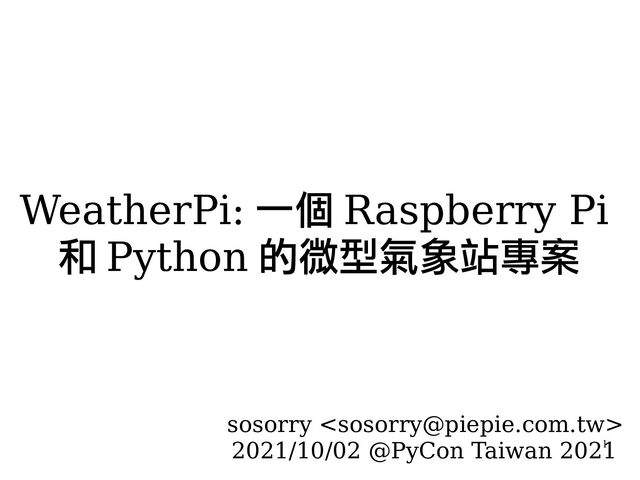 這是我們在 PyCon Taiwan 2021 的分享,主要介紹 WeatherPi 微型氣象站的專案。
