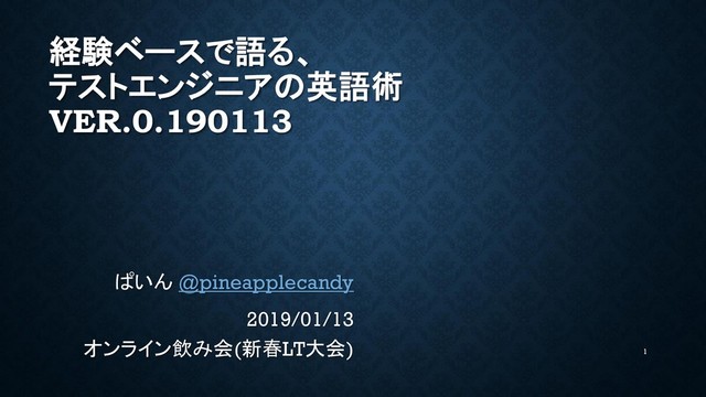 #オンライン飲み会 経験ベースで語るテストエンジニアのための英語術 Ver.0.190113