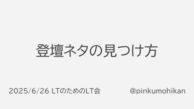 2025/6/26にWeWork品川で開催された「LTのためのLT会」にて、「登壇ネタの見つけ方」というテーマでお話しました。