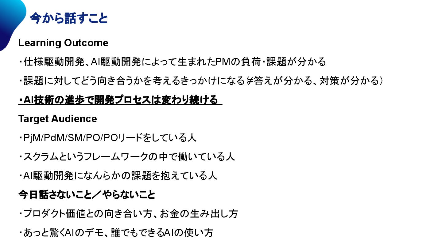 置き換えられます。これは、週単位ではなく時間や日単位で測定される、より短く集中的な作業サイクルです。エピックは作業単位 ( Units of Work) に置き換えられます。 この用語の変更は、この手法がスピードと継続的デリバリーを重視していることを強調していま す。同様に、他の一般的なアジャイルの用語も AI 中心のワークフローに合わせて再定義され、この手法のソフトウェア開発における革新 的なアプローチをより適切に表現する用語体系が作られています。 https://aws.amazon.com/jp/blogs/news/ai-driven-development-life-cycle/