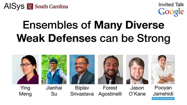Despite achieving state-of-the-art performance across many domains, machine learning systems are highly vulnerable to subtle adversarial perturbations. Although defense approaches have been proposed in recent years, many have been bypassed by even weak adversarial attacks. Previous studies showed that ensembles created by combining multiple weak defenses (i.e., input data transformations) are still weak. In this talk, I will show that it is indeed possible to construct effective ensembles using weak defenses to block adversarial attacks. However, to do so requires a diverse set of such weak defenses. Based on this motivation, I will present Athena, an extensible framework for building effective defenses to adversarial attacks against machine learning systems. I will talk about the effectiveness of ensemble strategies with a diverse set of many weak defenses that comprise transforming the inputs (e.g., rotation, shifting, noising, denoising, and many more) before feeding them to target deep neural network classifiers. I will also discuss the effectiveness of the ensembles with adversarial examples generated by various adversaries in different threat models. In the second half of the talk, I will explain why building defenses based on the idea of many diverse weak defenses works, when it is most effective, and what its inherent limitations and overhead are. Finally, I will show our recent advancement toward synthesizing effective ensemble defenses automatically by identifying complementary weak defenses over the induced space of weak defenses using a combination of search and optimization.
