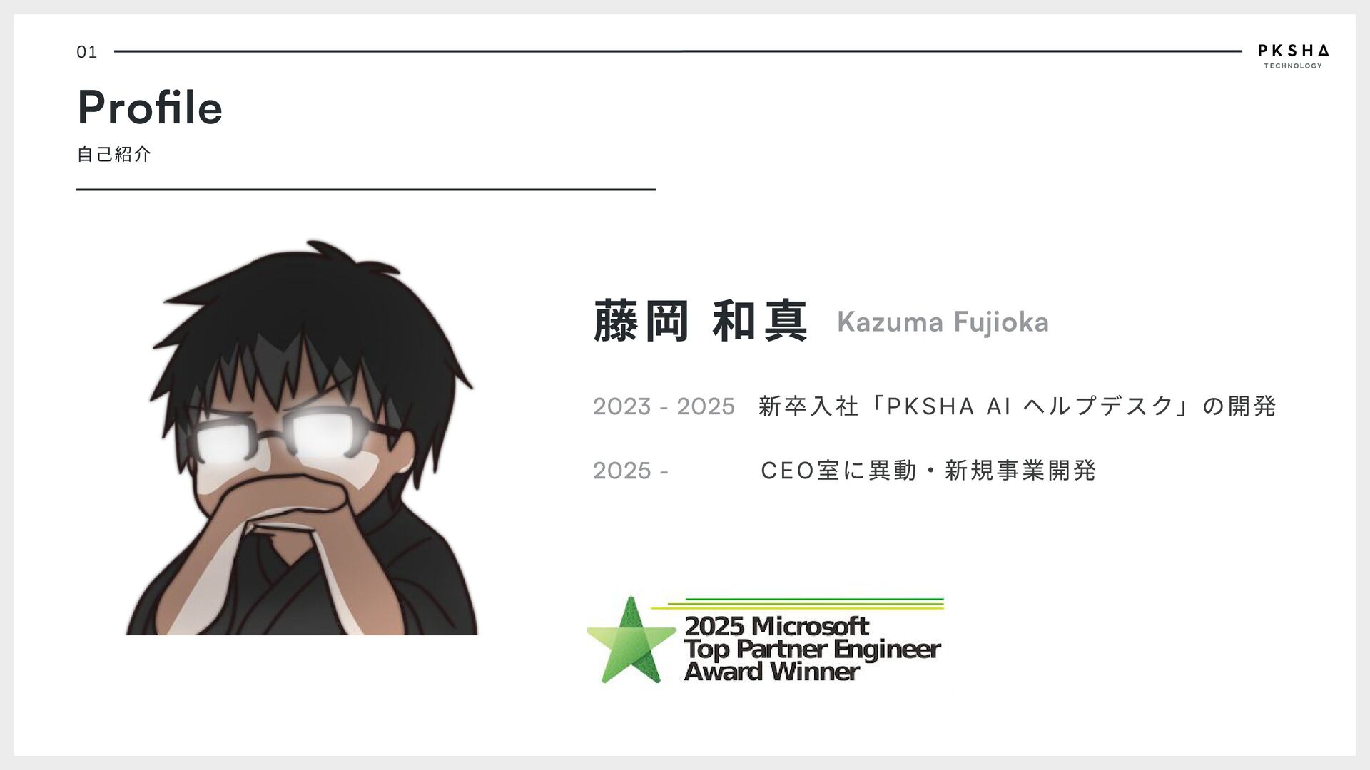 1. 01 Profile 自己紹介 藤岡 和真 Kazuma Fujioka 2023 - 2025