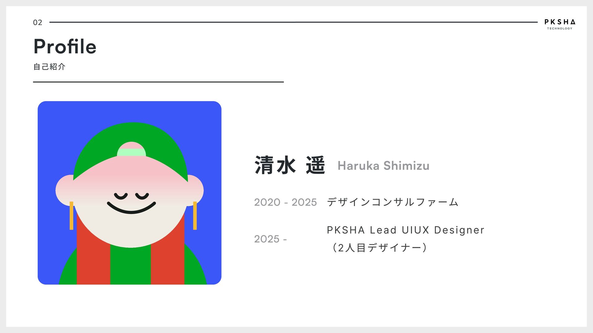 2. 02 Profile 自己紹介 清水 遥 Haruka Shimizu 2020 - 2025