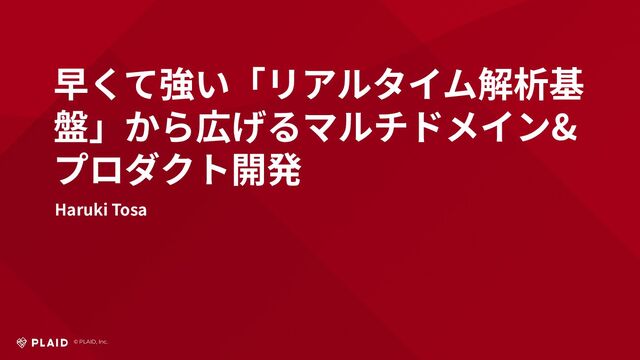 © PLAID, Inc. 早くて強い「リアルタイム解析基 盤」から広げるマルチドメイン& プロダクト開発 Haruki Tosa