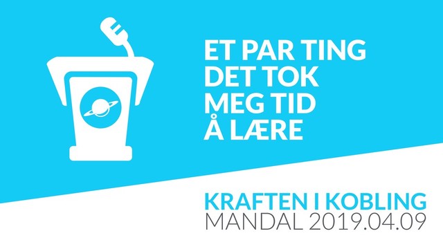 Mit foredrag på "Kraften i Kobling 2019" i Buen i Mandal, 9. April 2019. Forespørsler: [email protected] Tre ting jeg tenkte å dele: 1. Hva kraften i kobling betyr for meg 2. Hva vi kan lære av startups 3. Hvordan vi kan jobbe litt mer som startups i hverdagen.