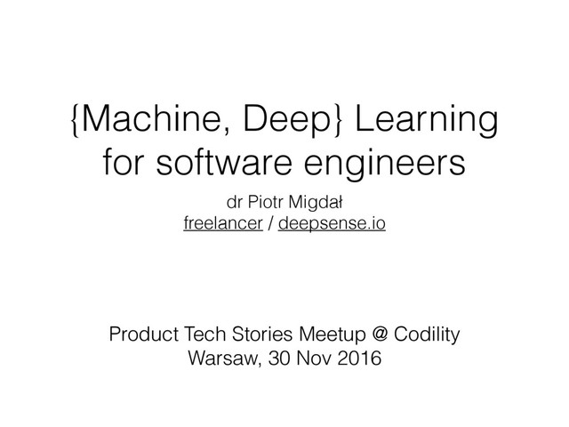 An opinionated recommendation for data science: Python environemnt, scikit-learn for Machine Learning and Keras for Deep Learning. At Product Tech Stories Meetup @ Codility