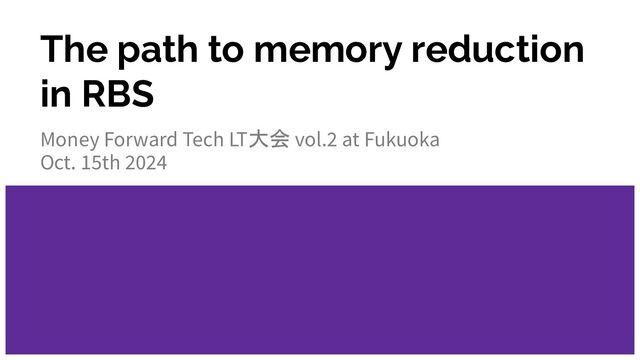 ◦ https://github.com/ruby/rbs/pull/1950 • Reduce Hash allocation during parsing ◦ 不要な処理が実行速度を速くする謎を追う - Money Forward Developers Blog https://moneyforward-dev.jp/entry/2024/09/26/removing-steps-make s-it-slower ◦ I will introduce this patch for the next Ruby version
