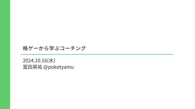 格ゲーから学ぶコーチング 2024.10.16( 水 ) 冨 田 英祐 @pokotyamu