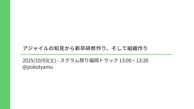 アジャイルの知 見 から新卒研修作り、そして組織作り 2025/10/03( 土 ) - スクラム祭り福岡トラック 13:00 ~