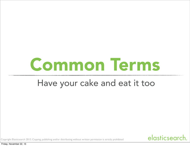 1. Common Terms Copyright Elasticsearch 2013. Copying, publishing and/or distributing without