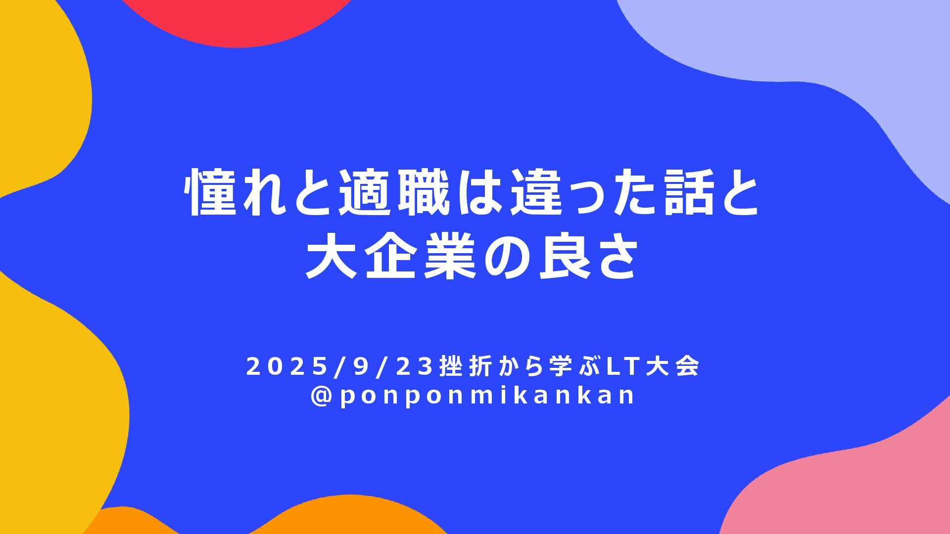 憧れと適職は違った話と 大企業の良さ 2 0 2 5 / 9 / 2