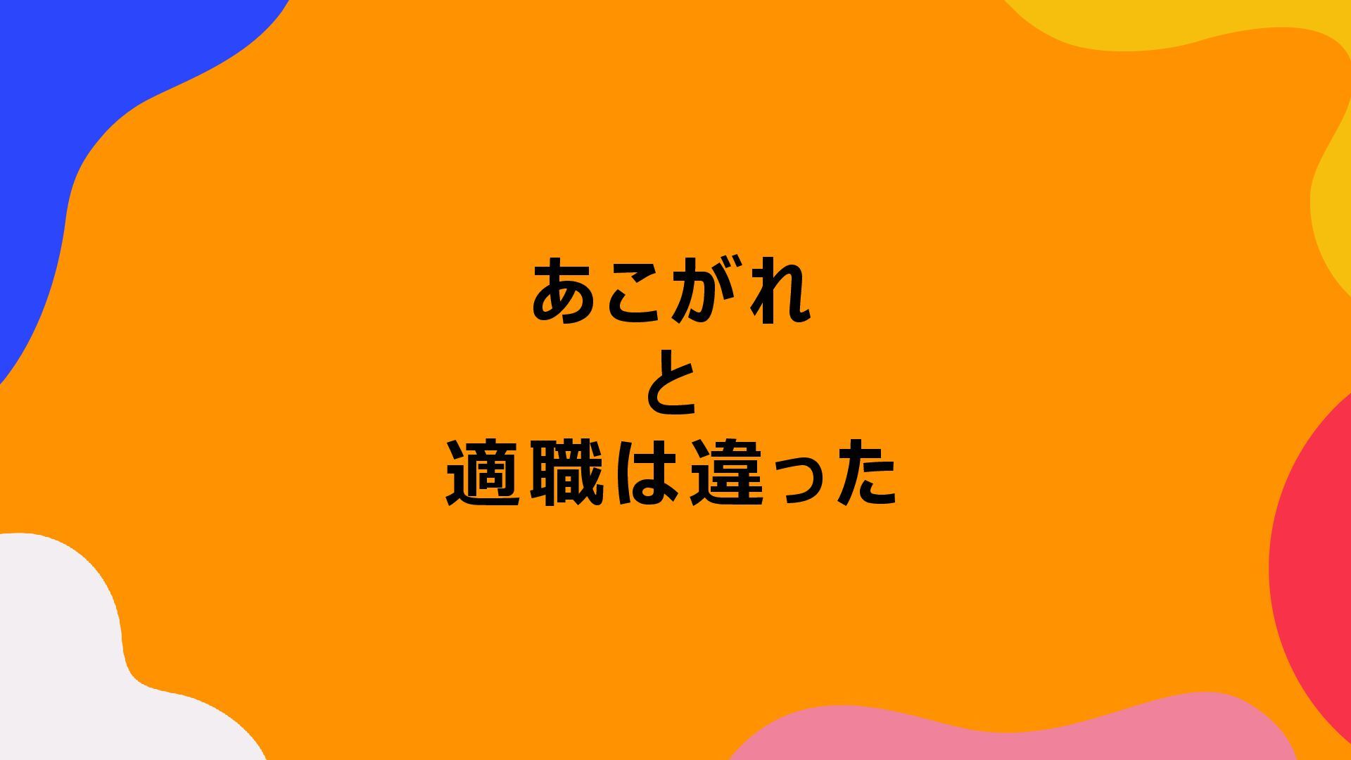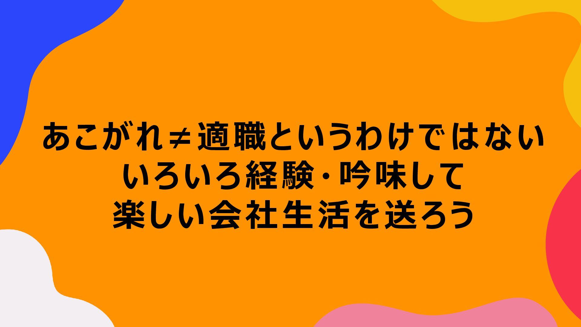 あこがれ≠適職というわけではない いろいろ経験・吟味して 楽しい会社生活を送ろう