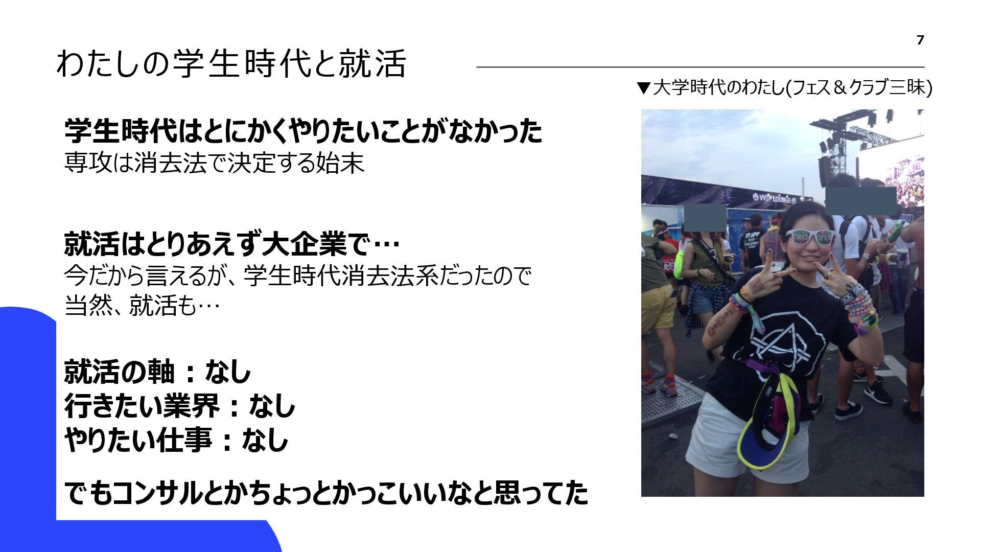 学生時代はとにかくやりたいことがなかった 専攻は消去法で決定する始末 就活はとりあえず大企業で… 今だから言えるが、学生時代消去法系だったので 当然、就活も… 就活の軸:なし 行きたい業界:なし やりたい仕事:なし でもコンサルとかちょっとかっこいいなと思ってた わたしの学生時代と就活
