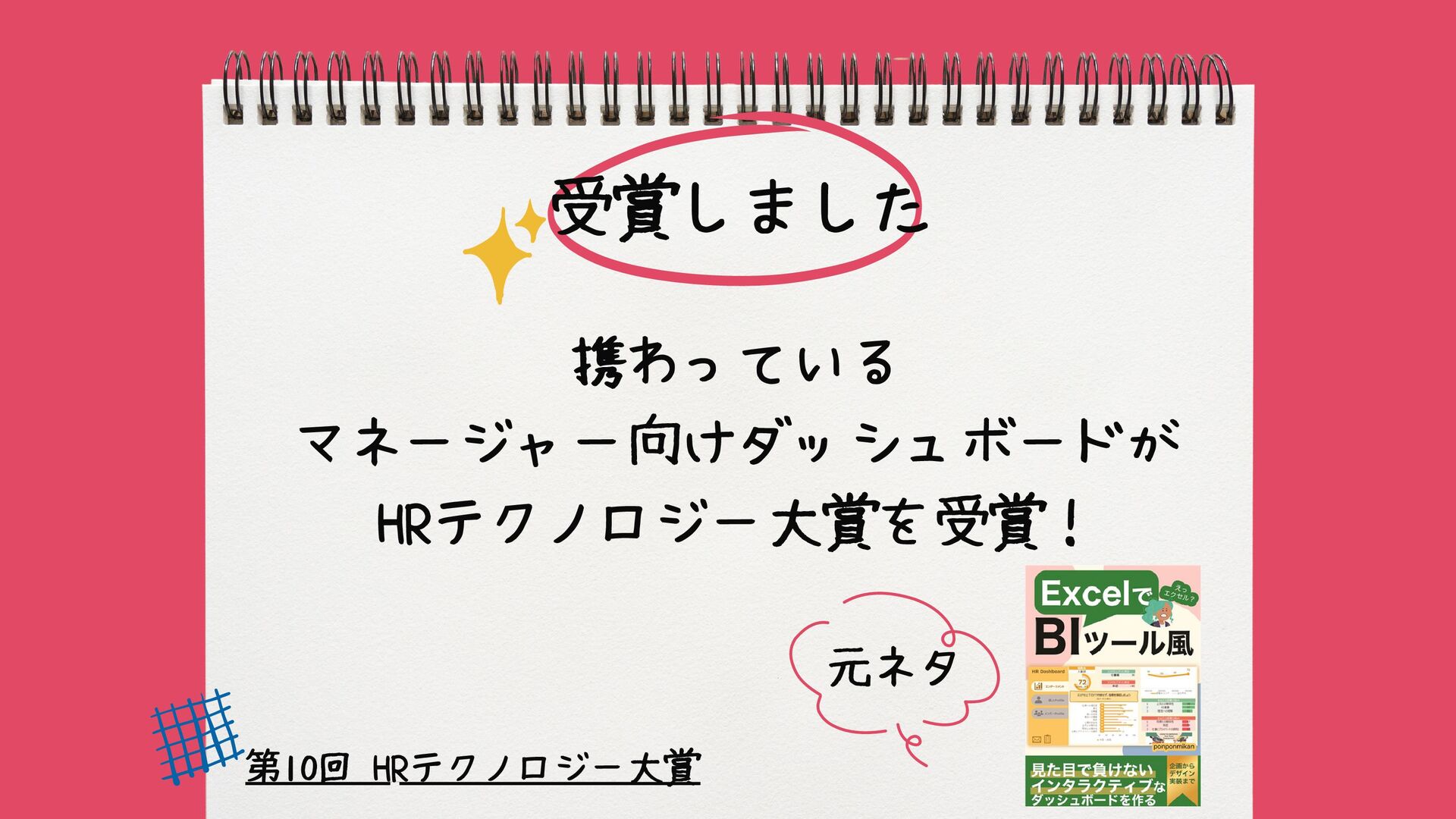携わっている マネージャー向けダッシュボードが HRテクノロジー大賞を受賞! 受賞しました 第10回 HRテクノロジー大賞 元ネタ