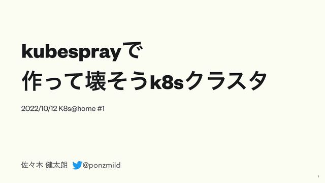 kubesprayͰ ࡞ͬͯյͦ͏k8sΫϥελ 2022/10/12 K8s@home #1 ࠤʑ ݈ଠ࿕ɹɹ@ponzmild 1