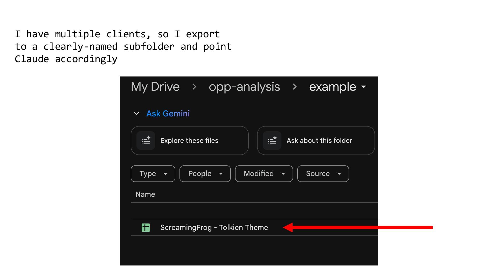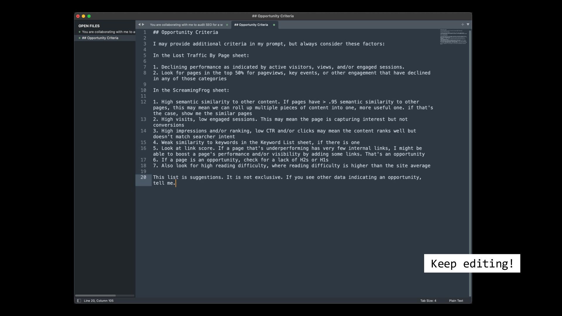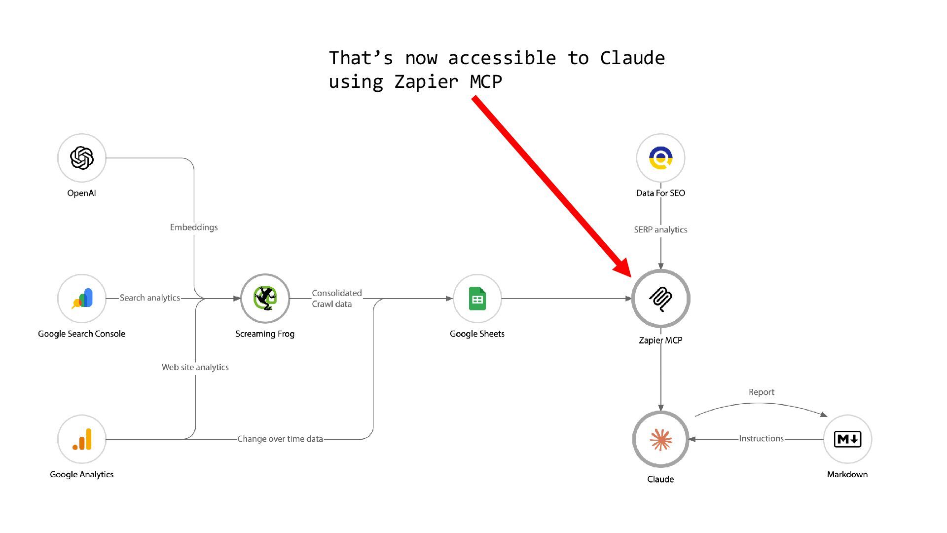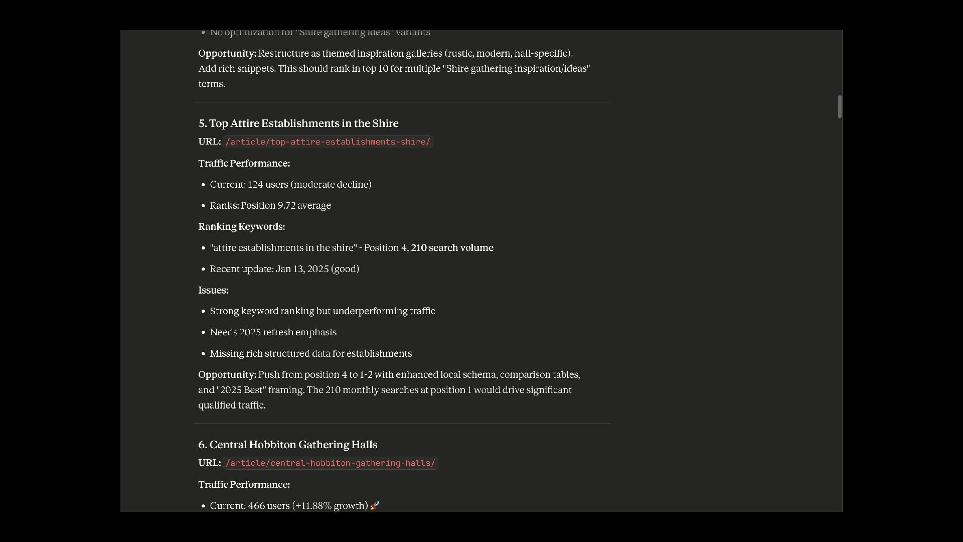 You can’t build an AI SEO expert. You can build an AI SEO audit workflow that analyzes your site’s existing content, traffic data, and crawl data for opportunities. I’ll show you how I do it, from the inputs — ScreamingFrog, Google Analytics, DataForSEO — to the prompts and project.
