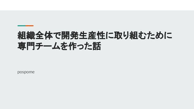 組織全体で開発生産性に取り組むために 専門チームを作った話 pospome