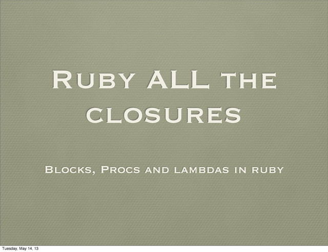 is a pretty cool language!" end #=> python is a pretty cool language! # ruby is a pretty cool language! # lua is a pretty cool language! Tuesday, May 14, 13