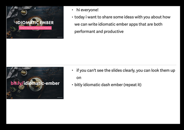 PRODUCTIVITY EMBERCONF 2016 export default Component.extend({ didRender() { // this is an infinite loop that will crash your browser let isFoo = get(this, 'isFoo'); set(this, 'isFoo', !isFoo); } }); • for example, this might look like fairly innocent • you might want to toggle some property after a component has rendered • but because it has side effects, it will cause a re-render, which fires the `didRender` hook again, which re- renders, and so on until your browser explodes IDIOMATIC EMBER – FINDING THE SWEET SPOT OF PERFORMANCE & PRODUCTIVITY EMBERCONF 2016 Dealing with side effects ➿ Can cause infinite loops "Just re-render it" Not invoked in FastBoot environment Totally arbitrary ratings • in a nutshell, lifecycle hooks are useful for replacing observers and for controlling side effects • however, they can also be potential footguns, as you can easily cause an infinite loop or sync issues if your logic is not idempotent • so use them with caution