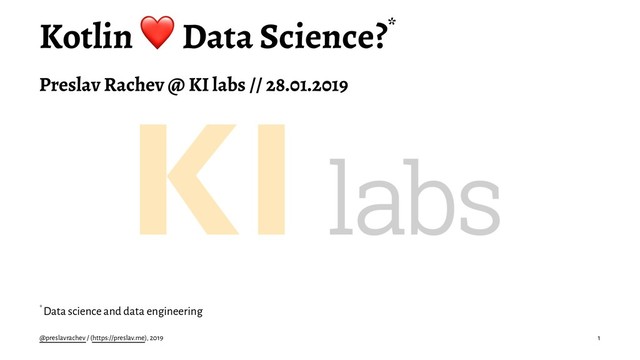 data team involves the use and deployment of executable scripts. This is one field where Python excels off the charts Kotlin Script is unfinished, slow and painful to work with ! KEEP-75 @preslavrachev / (https://preslav.me), 2019 26