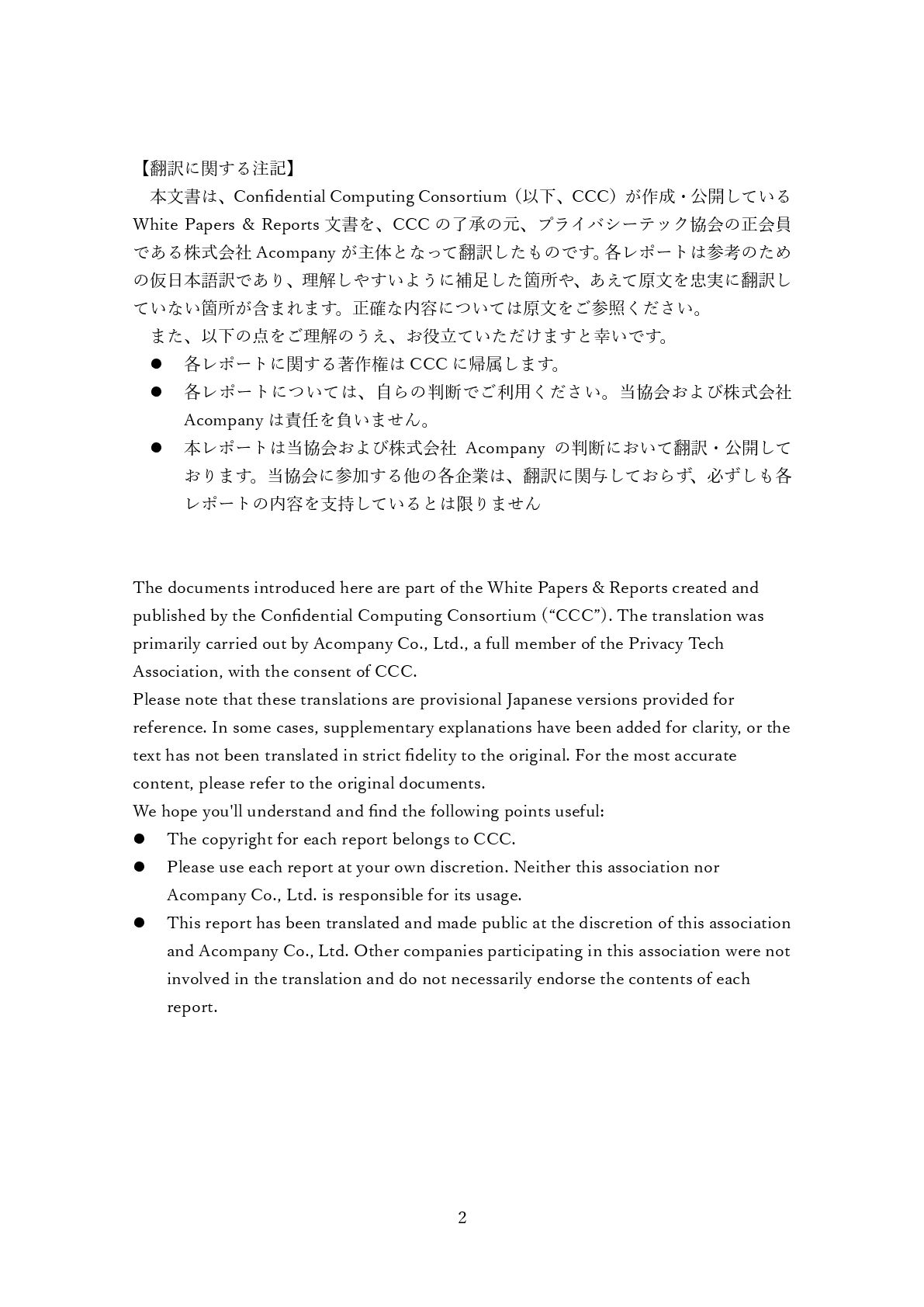 *Confidential Computing Consortium(以下、CCC)が作成・公開している「White Papers & Reports「Confidential Computing: Hardware-Based Trusted Execution for Applications and Data 」を、CCCの了承の元、プライバシーテック協会およびその正会員である株式会社Acompanyが翻訳したものです。